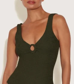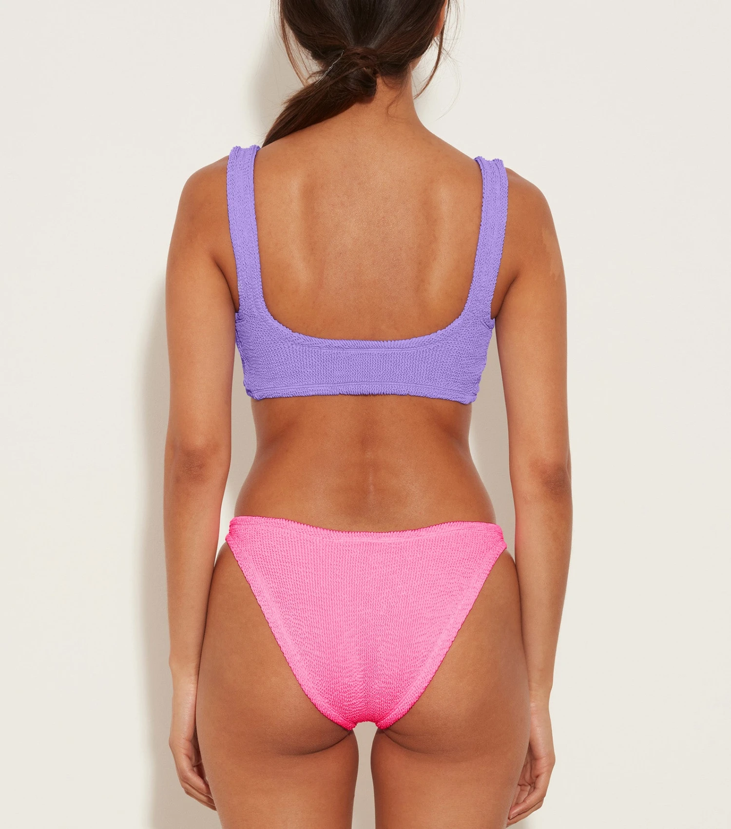 Support and style meet with Juno’s twist detail top and classic coverage bikini bottoms that can be worn high or low on the hip.
