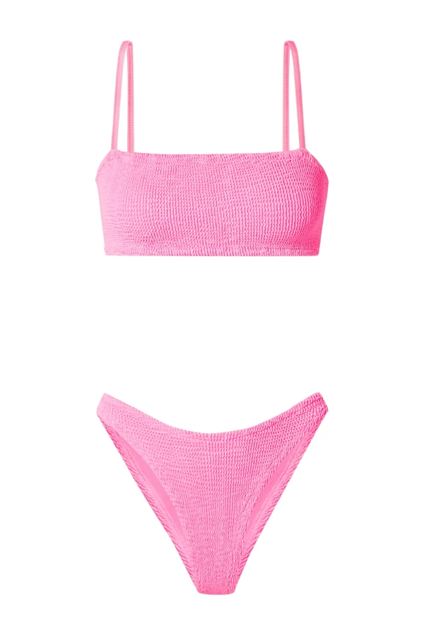 An update on our classic Hunza G Gigi Bikini – this athletic strappy two piece is made for those wanting a comfortable yet cheeky hip grazing set. Micro tonal lycra straps add support without bulk, suiting a wide range of bust sizes. Ideal for scorching days near the water or lounging in the garden.