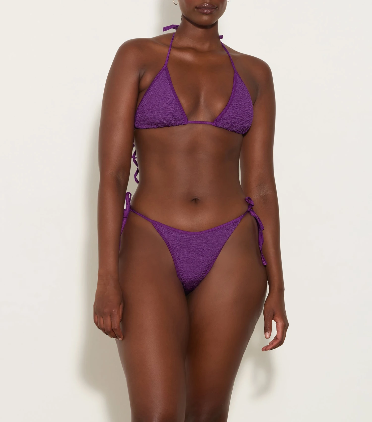 It’s here, the original Hunza G triangle bikini. This versatile classic has an adjustable neck and side ties so you can style it your own way. Your new favourite bikini.