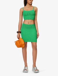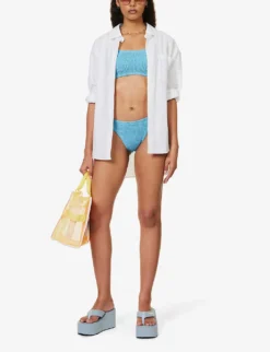 Bandeaus aren’t just for small busts – the Jean Bikini Hunza G has the coverage you need without compromising on strap-free style. Crafted from the famed crinkle cut fabrication, this one size fits all bikini is a classic with a subtle knot at the front and loads of summer style.