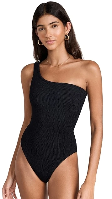 Crafted in the label’s signature, curve-conforming crinkle fabric and featuring a stylish one-shoulder neckline, this Hunza G swimsuit is a sophisticated one-piece option for your next beach day.