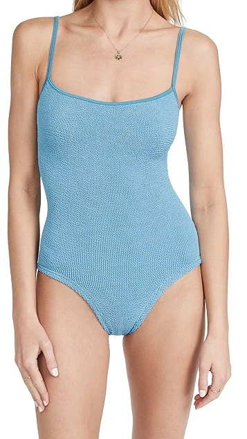 Crafted in the label’s signature, curve-conforming crinkle fabric and featuring a minimalist silhouette, this Hunza G swimsuit is a sophisticated one-piece option for your next beach day.