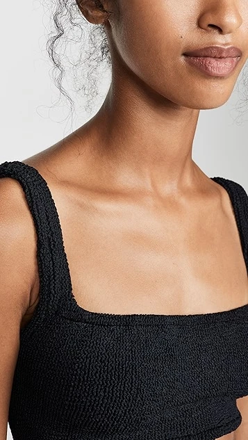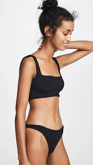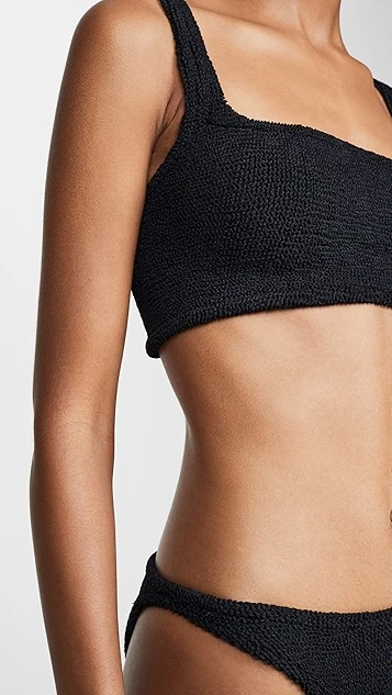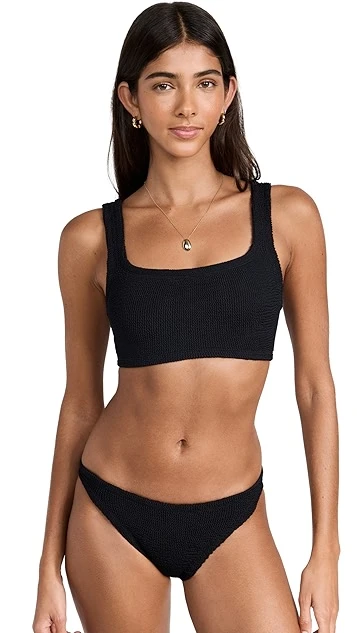 This sporty black bikini set from Hunza G is made from the brand’s signature crinkle fabric, which has made the label a longtime favorite for swim and off-duty basics.
