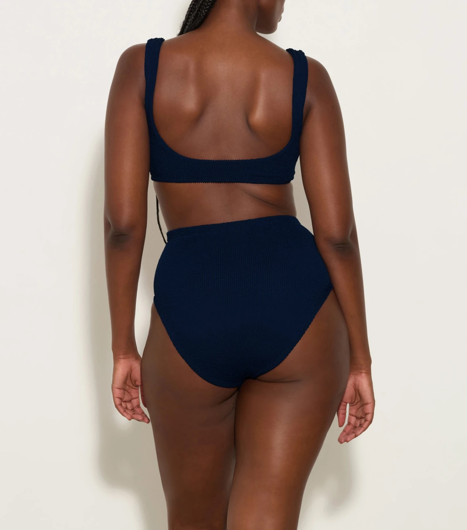 She’s got it all. Nadine’s high waisted bikini bottoms and tortoiseshell hoop detailing have comfort with a serving of understated glamour.