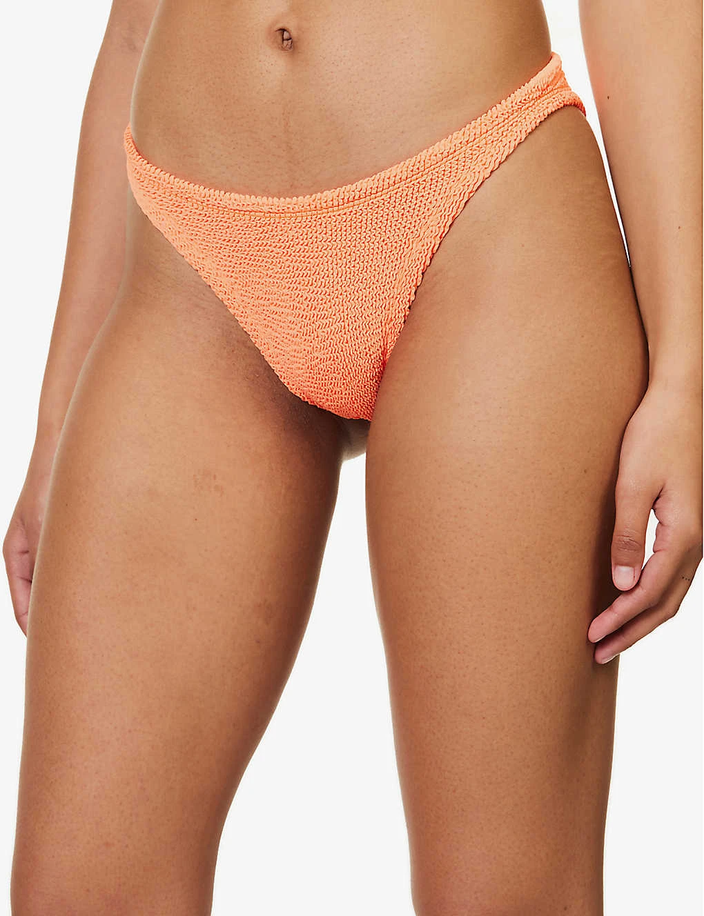 - Regular-fit, high-rise, elasticated waistband, all-over crinkled weave, high leg, mid-coverage at back
