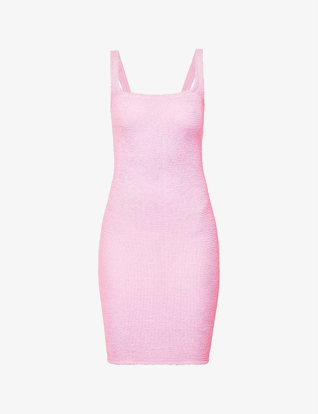 Plissé Scoop-neck Stretch-woven Mini Dress